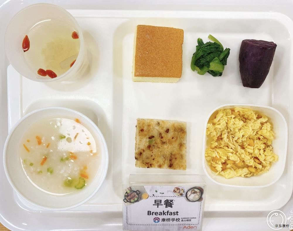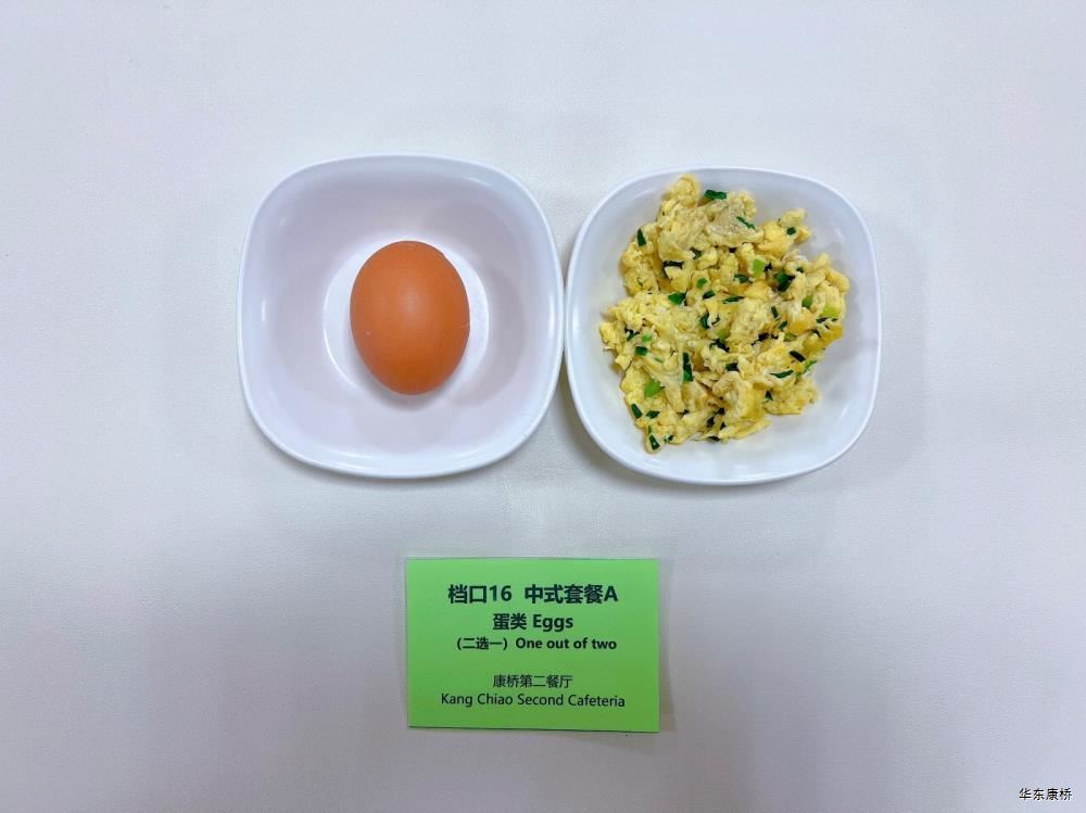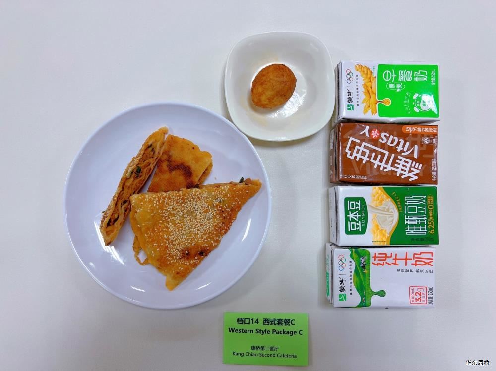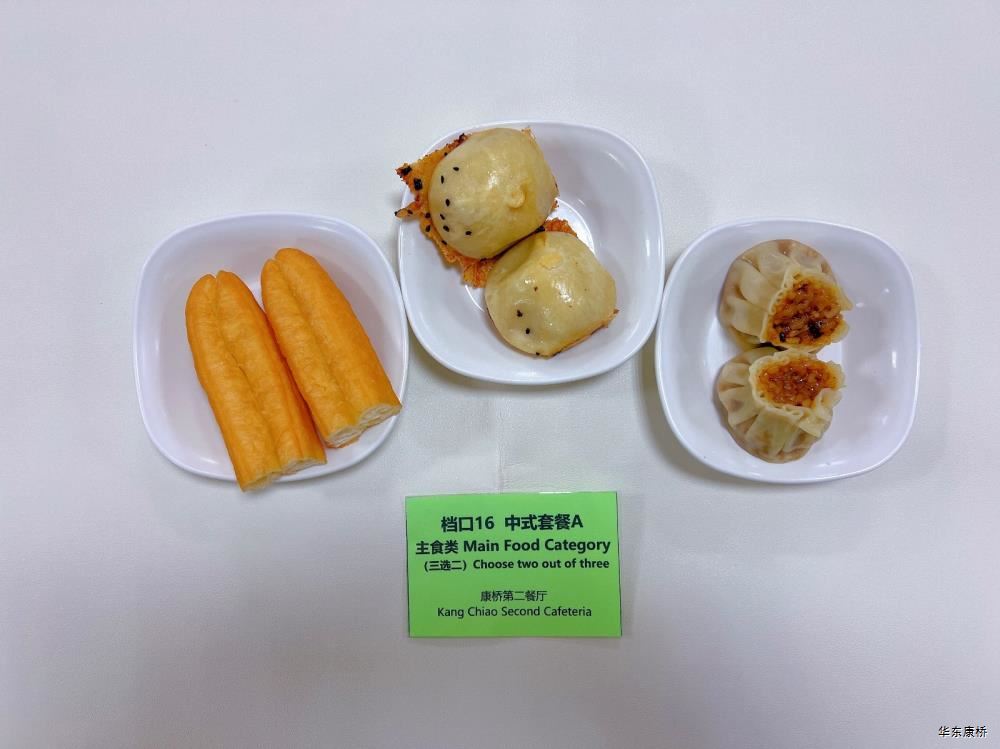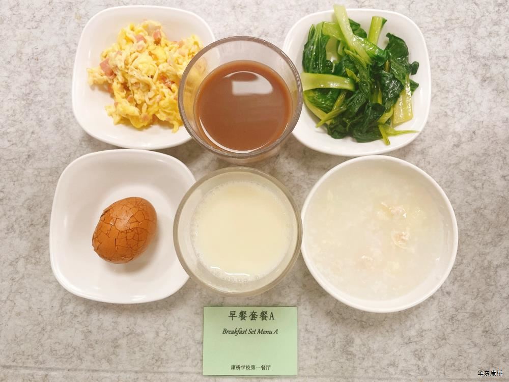 "鲜肉生煎包*2Fresh meat pan-fried bun/糯米烧麦Glutinous rice shao-mai/香酥油条Crispy youtiao(三选二) " 经典美式热狗(140g)American hot dog,虎皮蛋Tiger skin egg,纯牛奶/豆奶/早餐奶/酸牛奶(四选一)Milk/Soymilk/Breakfast milk//Sour milk 千层牛肉饼Multi-layered beef cake,虎皮蛋Tiger skin egg,纯牛奶/豆奶/早餐奶/酸牛奶(四选一)Pure milk / soy milk / breakfast milk / yogurt "蒸南瓜Steamed pumpkin,牛肉蛋花粥Beef and egg drop porridge,豆浆/阿华田Soybean milk / Ahua Tian,白粥 Rice Congee,酸脆黄瓜Sour crisp cucumber,红油萝卜丁Diced radish with red oil,蛋炒饭Fried rice with egg " 鸡汤面Chicken soup noodles,荷包蛋Fried egg,清炒时蔬Organic vegetables,豆浆/阿华田Soybean milk / Ahua Tian "白煮蛋Boiled egg/小葱炒蛋Stir fried eggs with scallions(二选一) "