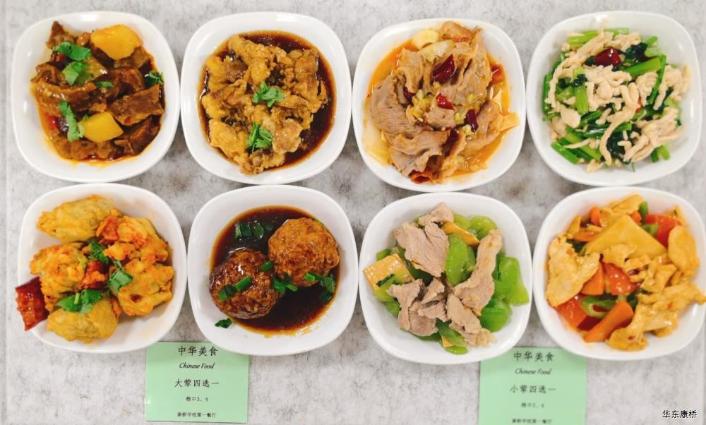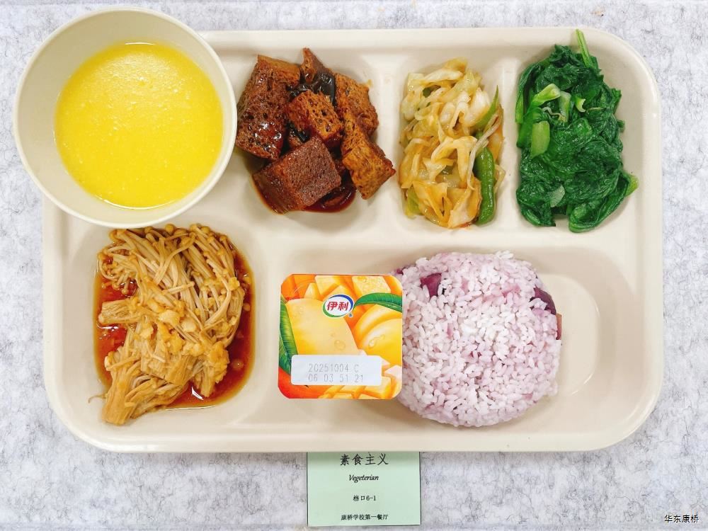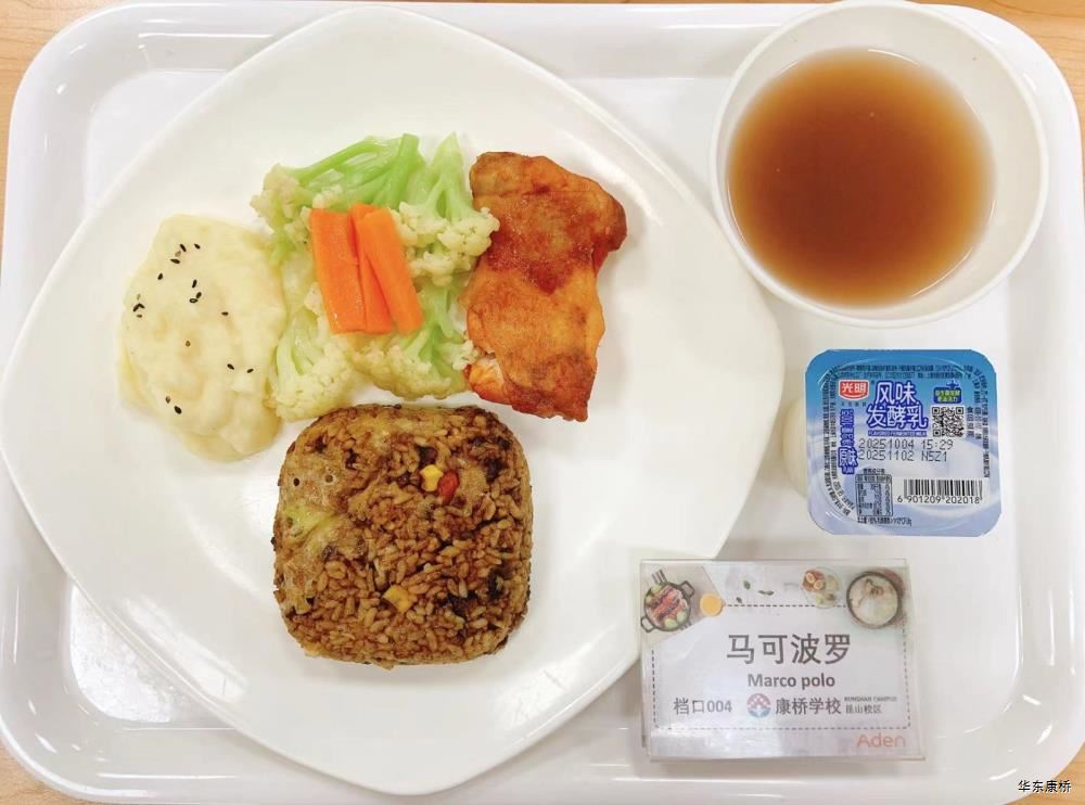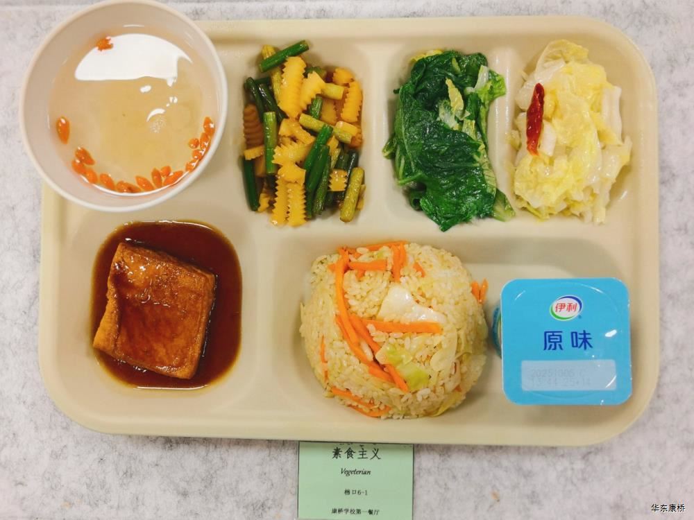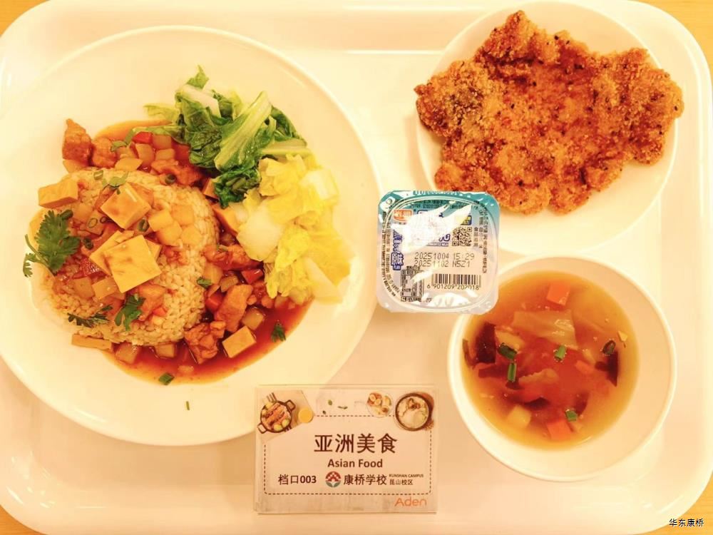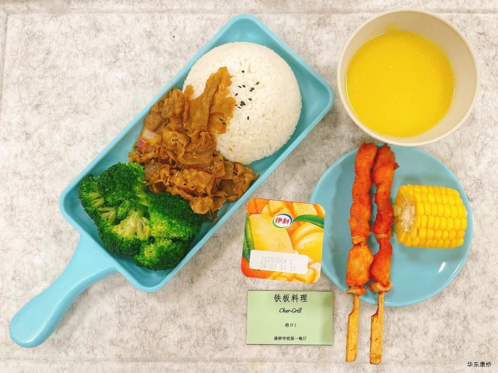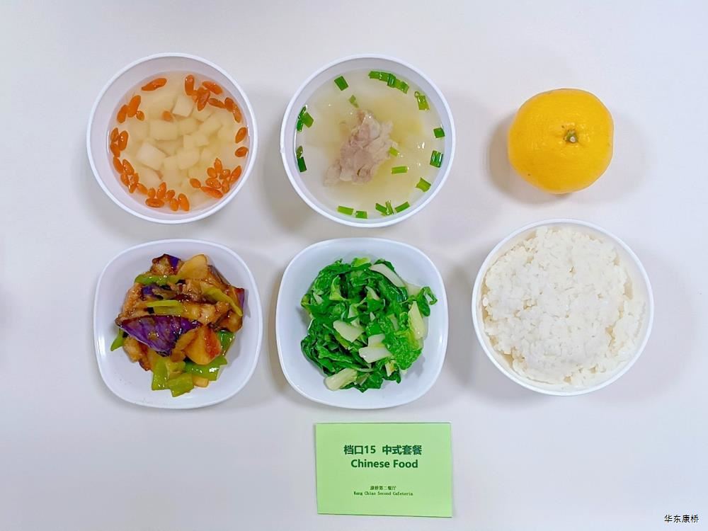 日式照烧鸡排饭(配料:鸡排、胡萝卜丝、西蓝花、玉米粒、海苔、日式照烧汁、煎蛋(过敏源))Roasted chicken paifan(Ingredients: chicken chops、 shredded carrots、 broccoli、 corn kernels、 seaweed、 roasted sauce、 fried eggs (Allergy source)),章鱼烧*2Takoyaki,有机蔬菜一道 Organic vegetables,酸奶/水果Yogurt or Fruit,冬瓜排骨汤Winter melon pork ribs soup,山药枸杞汤Yam wolfberry soup 大荤(4选1)糖醋仔排Sweet and Sour Spare Ribs/奥尔良烤翅Orlean roasted wings/红烧小黄鱼(带刺、过敏源)Braised small yellow croaker(With thorns、 over sensitive source)/萝卜炖猪蹄Stewed trotters with radish,小荤(4选1)蒜苔炒鸡蛋(过敏源)Garlic sprouts and scrambled eggs(Allergy source)/肉沫丝瓜Minced pork with loofah/木耳鸡丝Shredded chicken with fungus/虾仁炖蛋(过敏源)Steamed shrimp and egg(Allergy source), 蔬菜:地三鲜Sautéed Potato、 Green Pepper and Eggplant,有机蔬菜Organic vegetables,主食:白米饭Rice,酸奶/水果 Yogurt or Fruit,冬瓜排骨汤Winter melon pork ribs soup,山药枸杞汤Yam wolfberry soup 重庆小面(微辣)Chongqing noodles(Slightly spicy),香炸鸡腿Fried chicken leg,卤蛋(过敏源)Spiced corned egg (Allergy source),黄金豆Fried peas,姜汁藕片Lotus root slices with ginger sauce,有机蔬菜一道 Organic vegetables ,酸奶/水果Yogurt or Fruit 藤椒风味猪排汉堡Tengjiaofeng pork chop hamburger,奥尔良烤鸡翅*2Aoerliang roast chicken wings,葡式蛋挞*1Portuguese egg tart ,西蓝花Broccoli,奶香玉米粒Milk-flavored corn kernels,特殊饮品Special drink,酸奶/水果Yogurt or Fruit 五香素鸡Spiced tofu,地三鲜Sautéed Potato、 Green Pepper and Eggplant,孜然面筋Cumin gluten ,有机蔬菜一道Organic vegetables ,紫米饭Purple rice,酸奶/水果Fruit or Yogurt,冬瓜排骨汤Winter melon pork ribs soup,山药枸杞汤Yam wolfberry soup -