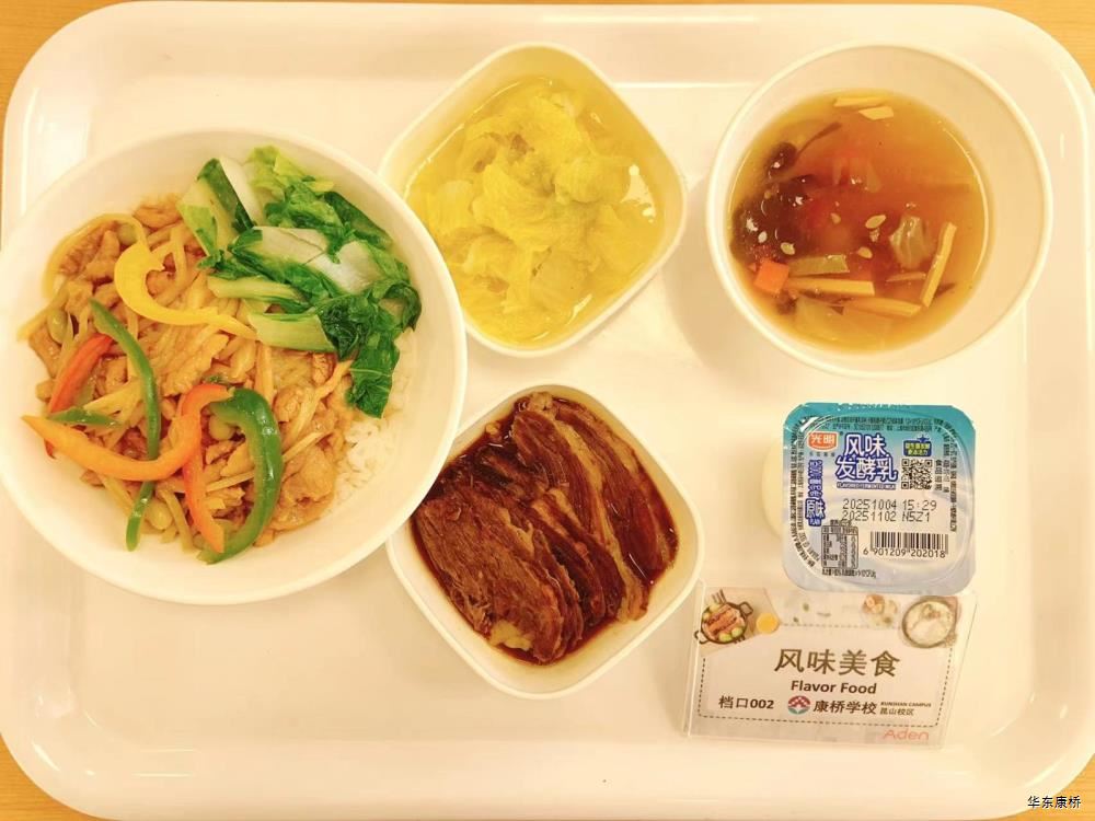 酸菜鱼(不可添加) Pickled Fish with Sichuan Vegetables 川式炒肉片 Sichuan style stir fried pork slices 家常烧豆腐 Home-cooked tofu 有机绿叶蔬菜 Organic Vegetables 米饭 Steamed Rice 水果或酸奶(二选一) Fruit or Yogurt 台式牛腩面(牛腩不可添加) Taiwan beef brisket noodles 卤蛋 Marinated egg 茭白莴笋炒黑木耳 Stir-fried black fungus with bamboo shoots and lettuce 有机绿叶蔬菜 Organic Vegetables 水果或酸奶(二选一) Fruit or Yogurt 芝士牛肉炒饭 Fried Rice with Beef and Cheese 奥尔良烤鸡排(微辣,不可添加) Orleans Grilled Chicken Chop 奶香土豆泥 Creamy mashed potatoes 有机蔬菜 Organic Vegetables 水果或酸奶(二选一) Fruit or Yogurt -