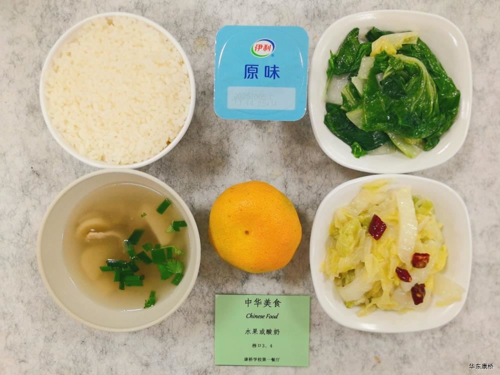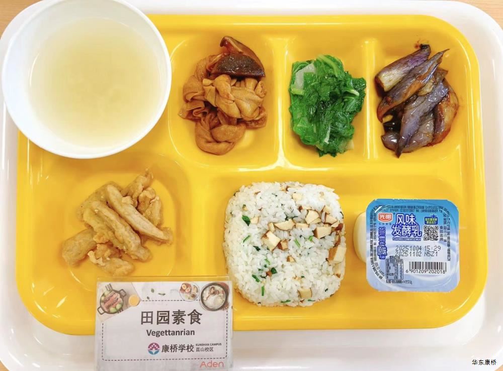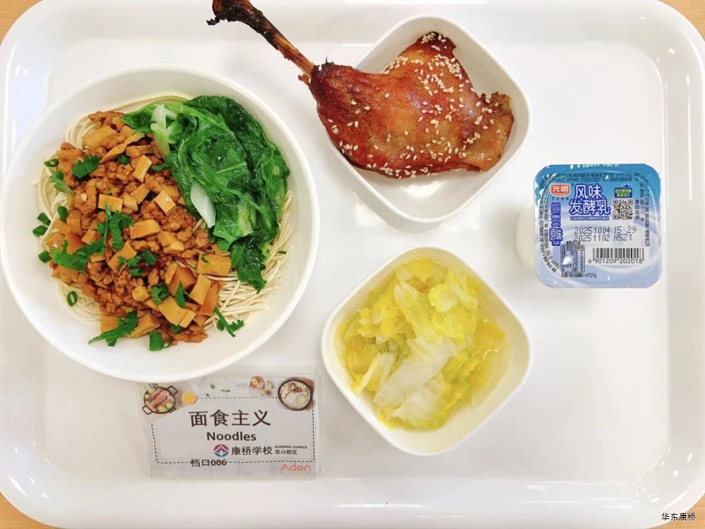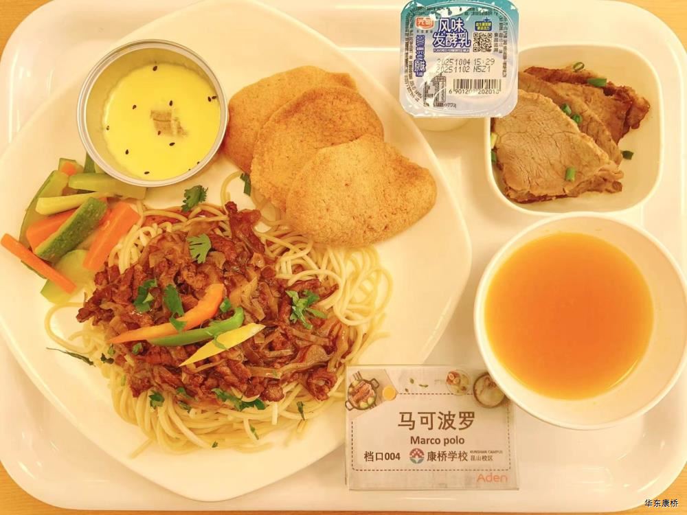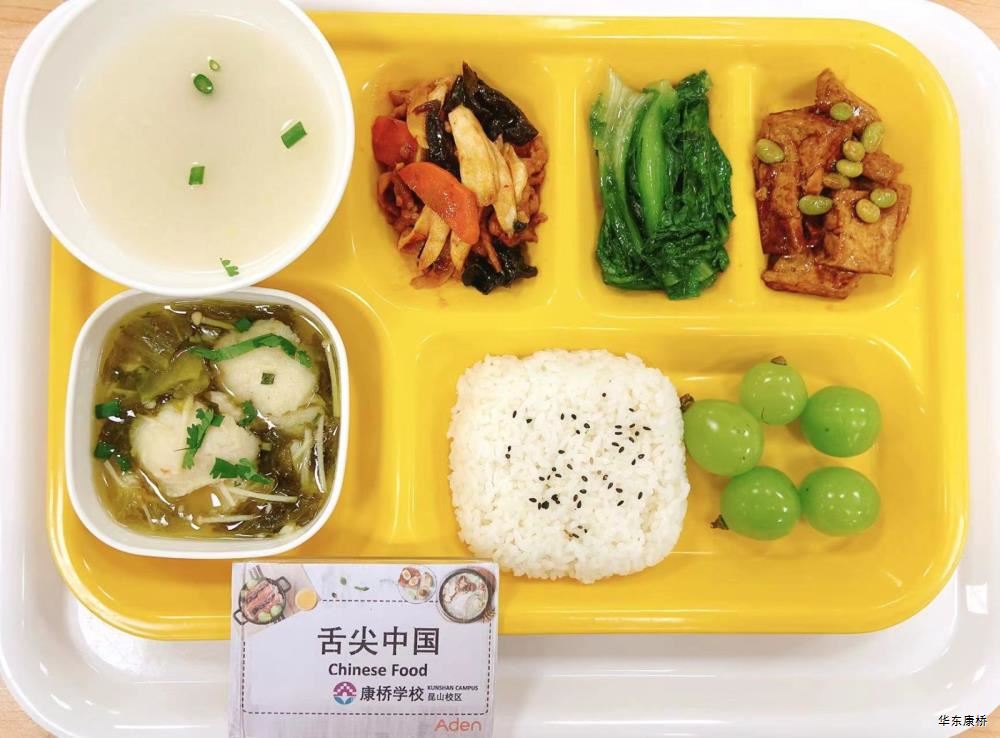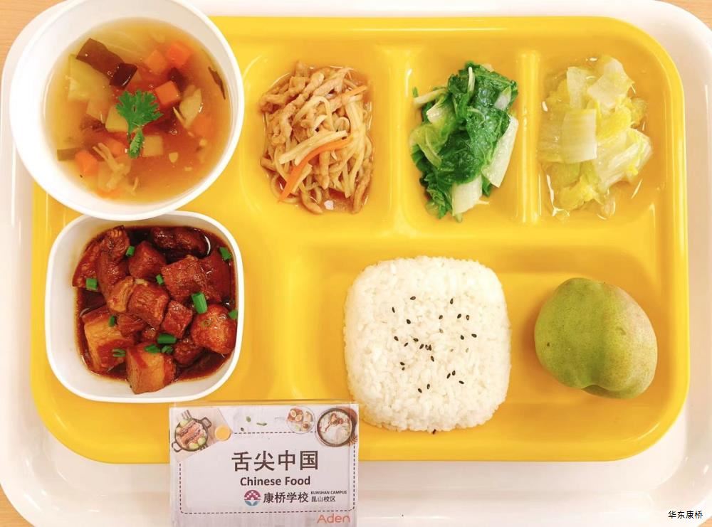 鲍鱼红烧肉(不可添加) Braised Pork with Abalone 西葫芦鸡蛋烩肉片 Fried pork slices with zucchini eggs 蘑菇菜花 Mushroom and cauliflower 有机绿叶蔬菜 Organic Vegetables 白萝卜炖鸡汤 Stewed chicken soup with white radish 米饭 Steamed Rice 水果 Fruit 卤水牛肉(不可添加) Marinated beef 茭白毛豆青椒肉丝盖饭 Rice covered with bamboo shoots, green beans, Shredded pork and green pepper 清炒娃娃菜 Stir fried baby cabbagee 有机绿叶蔬菜 Organic Vegetables 水果或酸奶(二选一) Fruit or Yogurt 苏式红汤面 Noodles mixed with scallion 甜皮芝麻烤鸭(不可添加) Sweet skinned sesame roasted duck 干煸肉燥笋丁豆干 Sauteed pork,bambo shoots and dried beans 清炒娃娃菜 Stir fried baby cabbage 有机绿叶蔬菜 Organic Vegetables 水果或酸奶(二选一) Fruit or Yogurt 香酥芝麻藕条 Sliced Lotus Root Coverd with Sesame 香菇焖百叶节 Mushroom Stewed Leaf Festival 油焖茄子 Braised eggplant 有机绿叶蔬菜 organic vegetables 荠菜香干炒饭 Fried Rice with shepherd's purse and dried coriander 水果或酸奶(二选一) Fruit or Yogurt 鹌鹑蛋炖五花肉(不可添加) Stewed pork belly with honey quail eggs 茭白炒肉丝 Stir-fried shredded pork with cane shoots 清炒娃娃菜 Stir fried baby cabbage 有机绿叶蔬菜 Organic Vegetables 米饭 Steamed Rice 水果或酸奶(二选一) Fruit or Yogurt 孜然烤肉(不可添加) Cumin crispy Pork 黑胡椒牛柳意大利面 Spaghetti with beef black pepper sauce 赠送小食(虾片,不可添加) Crispy Prawn cracker Slices 香蕉牛奶烘蛋(推新,不可添加) Banana Milk Omelette 有机蔬菜 Organic Vegetables 水果或酸奶(二选一) Fruit or Yogurt 香脆芝麻大排(不可添加) Crispy Sesame Pork Ribs 卤肉饭 Braised pork Rice 清炒娃娃菜 Stir fried baby cabbage 有机绿叶蔬菜 Organic Vegetables 水果或酸奶(二选一) Fruit or Yogurt -