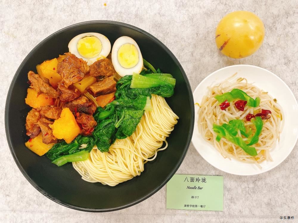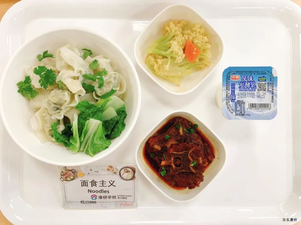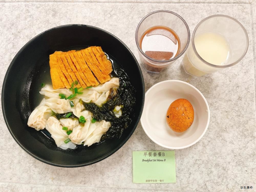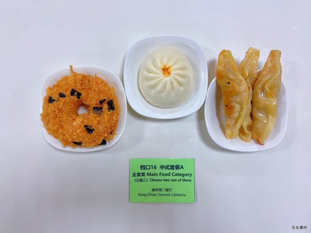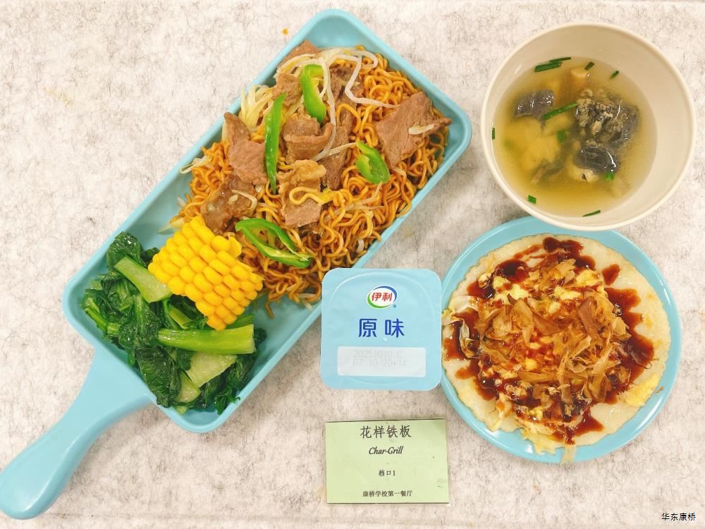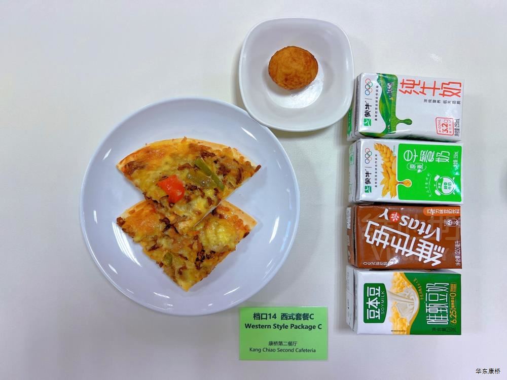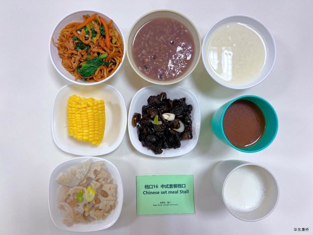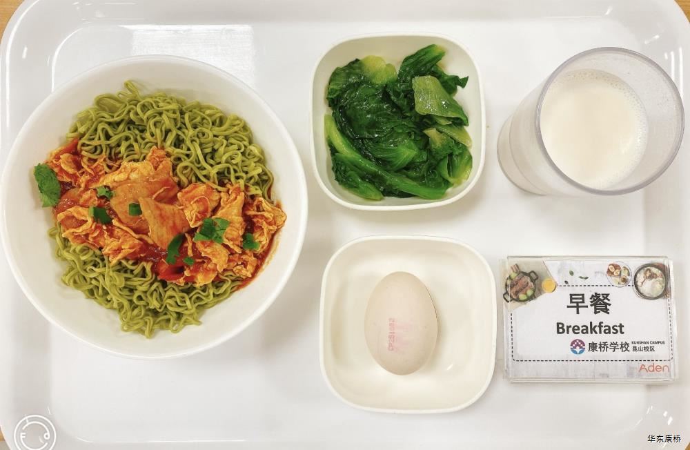 "虎皮蛋Fried boiled egg/荷包蛋Fried egg(二选一) " "海苔肉松甜甜圈Pork floss doughnut/香辣粉丝包(微辣)Spicy vermicelli buns(slightly spicy)/长锅贴*3Pan-fried dumpling (三选二) " "蒸玉米Steamed corn,八宝粥Eight treasure congee,牛奶/阿华田Milk/Ovaltine,白粥Rice Congee,开胃木耳Auricularia appetizer,姜汁藕片Lotus root slices with ginger sauce,青菜肉丝炒面Shredded meat stir fried noodles with vegetables " 韩式泡菜牛肉饭团Kimchi beef rice ball,虎皮蛋Fried boiled egg,纯牛奶/豆奶/早餐奶/酸牛奶(四选一)Milk/Soymilk/Breakfast milk//Sour milk 牛肉蔬菜披萨(140g)Beef and vegetable pizza,虎皮蛋Fried boiled egg,纯牛奶/豆奶/早餐奶/酸牛奶(四选一)Milk/Soymilk/Breakfast milk//Sour milk 炸酱拌面(微辣、小圆面)Fried noodles with meat sauce(Slightly spicy),荷包蛋Fried egg,清炒时蔬Organic vegetables,牛奶/阿华田Milk/Ovaltine
