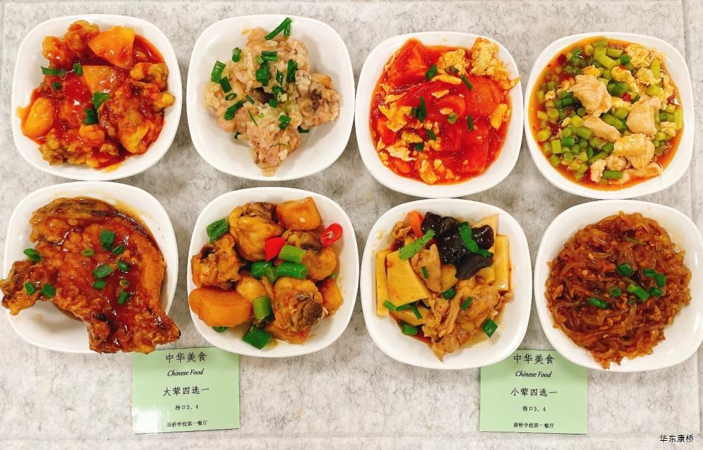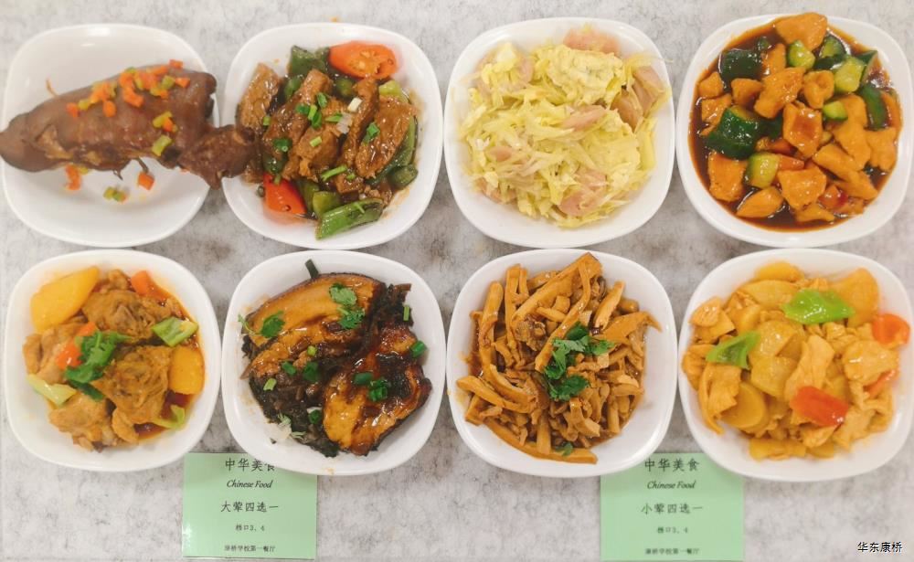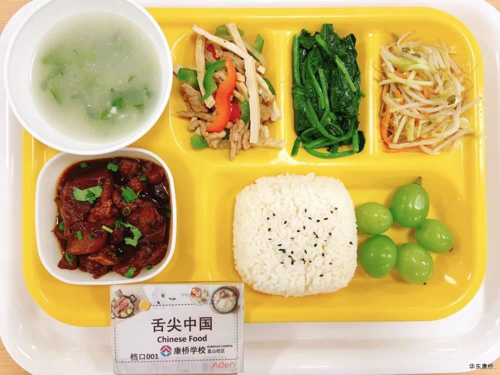 大荤(四选一) 梅干菜扣肉 Braised Pork with Preserved Vegetable 杭椒牛柳 Sauteed Beef Fillet with Hot Green Pepper 椒盐猪手 Salt and Pepper Pork Trotter 啤酒鸭 Braised Duck with Beer 小荤(四选一) 宫保鸡丁 Kangpo Chicken 川椒鸡片 Spicy Chicken Sliced 香肠韭黄炒鸡蛋 Sausage and Scallion Stir-Fried with Eggs 香干肉丝茶树菇 Fried Pork Sliced with Bean Curd and Agrocybe 白菜豆皮 Hot and Sour Cabbage with Bean Skin 清炒有机时蔬(1款) Fried Vegetable 紫菜蛋花汤 Seaweed and Egg Soup 水果或酸奶 Fruit or Yogurt 碳烤猪柳排 Pan-fried Pork Chops 香草鸡肉意面 Vanilla with Chicken Pasta 西葫芦,玉米棒 Squash, Corn 巧克力甜甜圈 Chocolate Doughnut 橙汁 Orange Juice 水果或酸奶 Fruit or Yogurt 麻辣鸡腿煲 Spicy Chicken Claypot 鸡腿块,贡丸,土豆,香芹,木耳,百叶,土豆粉 Chicken,Meat Ball, Potato, Celery,Fungus,Smoked Bean Curd,Potato Vermicelli 米饭 Steamed Rice 有机时蔬(1款) Fried Vegetable 紫菜蛋花汤 Seaweed and Egg Soup 水果或酸奶 Fruit or Yogurt 铁板蒜香鲷鱼配塔塔酱 Pan-Fried Snapper with Garlic and Tartar Sauce 荷包蛋 Poached Egg 白菜豆皮 Hot and Sour Cabbage with Bean Skin 清炒有机时蔬(1款) Fried Vegetable 紫菜蛋花汤Seaweed and Egg Soup 水果或酸奶Fruit or Yogurt 肚鸡面 Pork belly and Chicken Soup Noodles 孜然烤肉 Cumin BBQ 荷包蛋 Poached Egg 白菜豆皮 Hot and Sour Cabbage with Bean Skin 清炒时蔬(1款) Fried Vegetable 水果或酸奶 Fruit or Yogurt 三杯杏鲍菇 Mushroom with Three Dilicous 蒜苔炒香干 Sauted Chives with Bean Curd 红薯玉米饭 Sweet Potato and Corn Rice 白菜豆皮 Hot and Sour Cabbage with Bean Skin 清炒有机时蔬(1款) Fried Vegetable 雪梨银耳枸杞羹 White Fungus and Pear with Wolfberry Soup 水果或酸奶 Fruit or Yogurt -