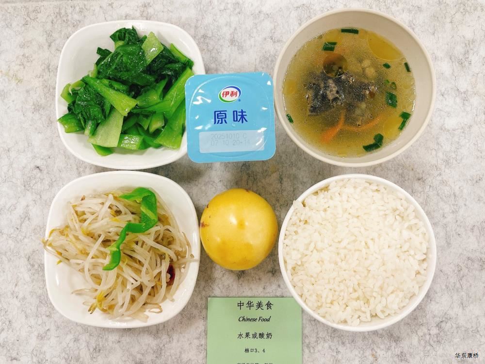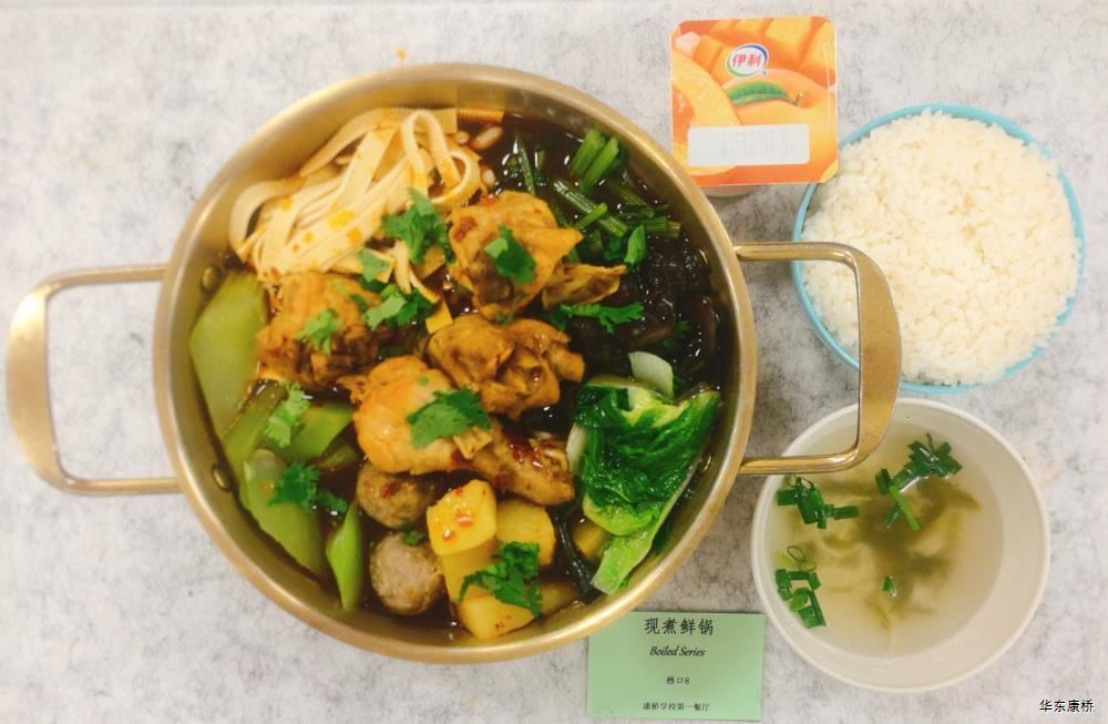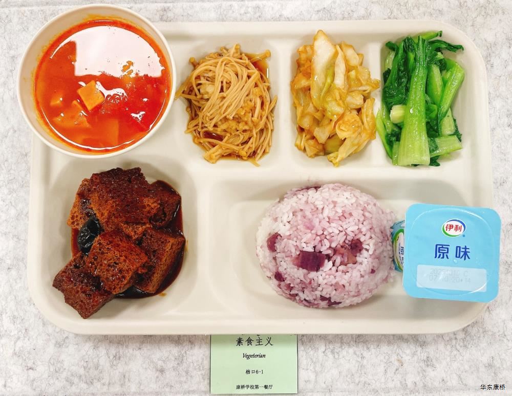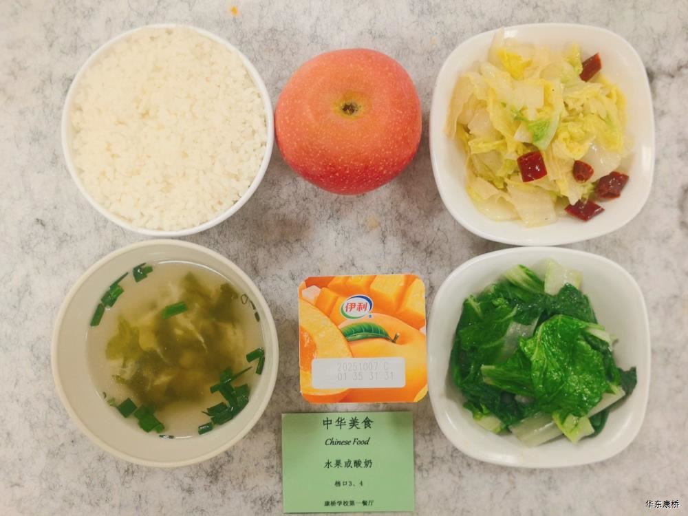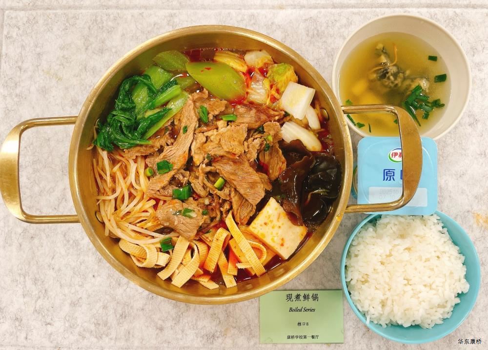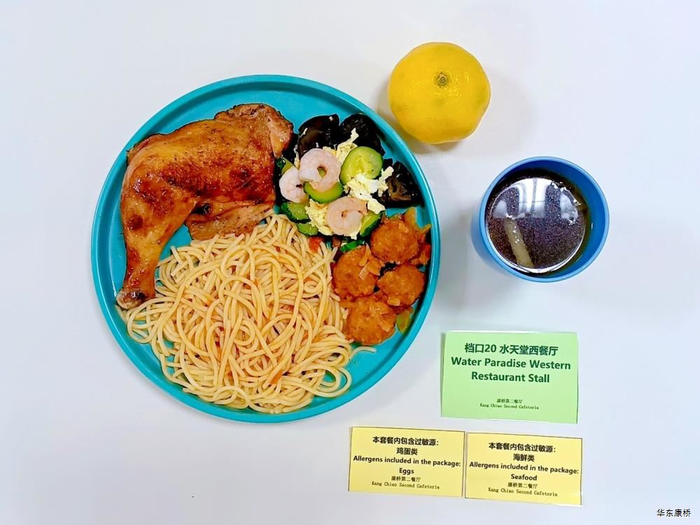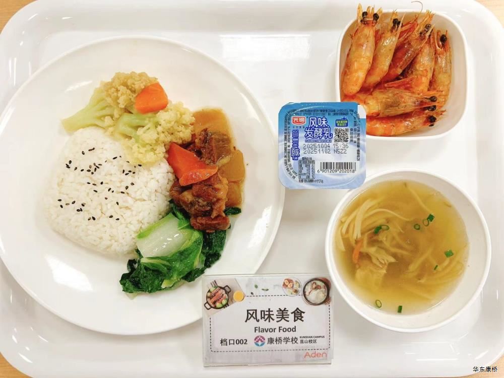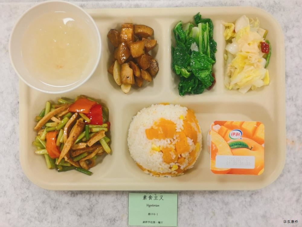 "酸汤肉片(微辣)(配料:里脊肉片、蛋饺、黄豆芽、木耳、金针菇(过敏源)、娃娃菜、小青菜、宽粉)Sour soup with sliced pork(Mild Spicy)(Ingredients: sliced pork tenderloin、 egg dumplings、 soybean sprouts、 black fungus、 enoki mushrooms (allergen source)、 baby cabbage、 baby greens、 wide rice noodles), 有机蔬菜一道 Organic vegetables,主食:白米饭Rice,酸奶/水果Yogurt or Fruit,鱼丸三鲜汤Fish balls soup,南瓜小圆子Pumpkin glutinous rice balls " 墨西哥辣椒牛肉炒饭(微辣)(配料:牛肉粒、洋葱、彩椒、番茄)Fried rice with diced beef (slightly spicy)(Ingredients: diced beef、 onion、 bell pepper、 tomato),墨西哥烤鸡块Grilled chicken chunks,蒜香西蓝花Garlic flavored broccoli,有机时蔬一道 Organic vegetables ,酸奶/水果Yogurt or Fruit,鱼丸三鲜汤Fish balls soup,南瓜小圆子Pumpkin glutinous rice balls 大荤(4选1)红烧狮子头Stewed pork ball /葱烧大排Braised pork chop with scallion/脆皮烤鸡Crispy roast chicken/黑椒焗肋排Baked ribs with black pepper,小荤(4选1)蘑菇炒蛋(过敏源)Mushroom scrambled eggs(Allergy source)/西芹鱿鱼花Celery squid flower/回锅肉片Stir-fried boiled pork slices in hot sauce /黑椒杏鲍菇炒鸭丁(过敏源)Diced duck fried with black pepper and shiitake mushrooms(allergen source), 蔬菜:酸辣藕片(微辣) Spicy and sour lotus root slices(slightly spicy),有机蔬菜 Organic vegetables,主食:白米饭Rice,酸奶/水果 Yogurt or Fruit,鱼丸三鲜汤Fish balls soup,南瓜小圆子Pumpkin glutinous rice balls 四喜烤麸Four-flavor fermented soybean cake,金玉满堂Fried diced vegetables,蒜蓉西蓝花Broccoli with Garlic Sauce,黑胡椒香煎口蘑(过敏源)Pan-fried button mushrooms with black pepper(allergen source),炒意面Fried pasta,酸奶/水果Yogurt or Fruit,鱼丸三鲜汤Fish balls soup,南瓜小圆子Pumpkin glutinous rice balls 猪扒拼芥末虾球轻食(配料:猪扒、虾球(过敏源)、杂粮土豆海苔肉松饭团、藕片、西蓝花、玉米段、芦笋、白煮蛋(过敏源)、蓝莓)Pork chop and shrimp balls light food package(Ingredients: pork chop、 shrimp ball(Allergy source)、 miscellaneous grains、 potatoes、 seaweed floss rice balls、 lotus root slices、 broccoli、 corn segments、 asparagus、 boiled eggs(Allergy source)、 blueberries),特殊饮品Special drink,鱼丸三鲜汤Fish balls soup,南瓜小圆子Pumpkin glutinous rice balls 老鸭粉丝汤(配料:鸭肉、荷包蛋(过敏源)、粉丝、小油豆腐、炸豌豆、生菜)Old duck vermicelli soup(Ingredients: duck、 poached eggs、 vermicelli、 bean curd、 fried peas、 lettuce),牛肉馅饼Beef pie, 有机蔬菜一道 Organic vegetables,酸奶/水果Yogurt or Fruit 奥尔良鸡腿堡Orleans chicken leg burger,麦辣鸡块*3Spicy chicken nuggets,波纹薯条French Fries,烤玉米Grilled Corn,蒜泥西蓝花Broccoli,话梅青柠红茶Plum and lime black tea,酸奶/水果Yogurt or Fruit -