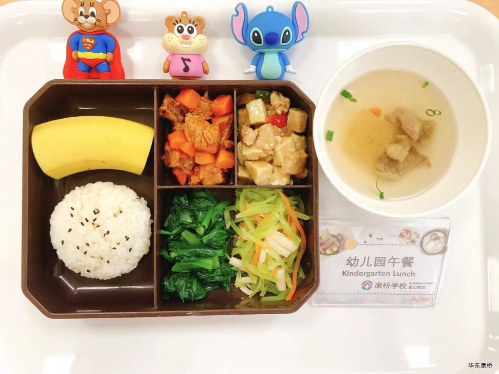 芝士肉酱焗饭Cheese meat sauce baked rice,黑椒蒜香烤鸡腿Black pepper garlic roasted chicken leg,黄油胡萝卜Butter carrots,西蓝花Broccoli,有机蔬菜一道Organic vegetables ,酸奶/水果Yogurt or Fruit,冬瓜排骨汤Winter melon pork ribs soup,山药枸杞汤Yam wolfberry soup 大荤(4选1)糖醋肋排Sweet and sour pork ribs/奥尔良烤翅Orlean roasted wings/红烧鲳鱼(带刺、过敏源)Braised pomfret (With thorns、 over sensitive source)/毛豆干烧鸡块Dried roast chicken with edamame,小荤(4选1)蒜苔肉丝saute meat shreds with garlic/土豆炒肉片Fried pork slices with potatoes/杂菌炒鸡丝(过敏源)Fried shredded chicken with mushroom/ 肉沫炖蛋(Allergy source)(过敏源)Stewed eggs with minced meat(Allergy source), 蔬菜:豆芽粉丝Bean sprouts vermicelli,有机蔬菜Organic vegetables,主食:白米饭Rice,酸奶/水果 Yogurt or Fruit,冬瓜排骨汤Winter melon pork ribs soup,山药枸杞汤Yam wolfberry soup 红烧素鸡Braised tofu,青椒炒香干Green pepper stir-fried bean curd,葱油炒海鲜菇(过敏源)Fried mushroom(Allergy source),清炒有机蔬菜Organic vegetables,杂粮饭Multigrain rice,酸奶/水果Yogurt or Fruit,冬瓜排骨汤Winter melon pork ribs soup,山药枸杞汤Yam wolfberry soup 小炒黄牛肉拌面(微辣)Snack beef mixed noodles (slightly spicy),荷包蛋(过敏源)Poached egg(Alle source),酸脆黄瓜条Crispy cucumber strips,有机时蔬一道Organic vegetable ,酸奶/水果Yogurt or Fruit 肉丸意面Spaghetti with meatballs,烤鸡Roast chicken,什锦三鲜Assorted three-delicacy,柠檬果茶Lemon fruit tea,酸奶/水果Yogurt or Fruit -