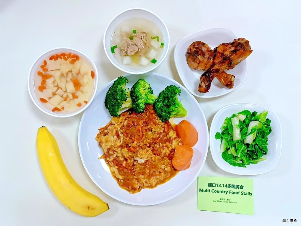 滑炒海鲜菇 Stir fried Seafood Mushroom 西芹腐竹百合 Celery, Rolls of dried bean milk creams and Lily 山药炒荷兰豆 Stir fried Dutch beans with yam 有机绿叶蔬菜 Organic Vegetables 香菇青菜豆干炒面疙瘩 Fried Noodles with Mushrooms and Vegetables and dried tofu 水果/酸奶 Fruit/Yogurt 豉油蒸鸡中翅*3 (不可添加) Steamed chicken wings with soy sauce * 3 滑溜木耳炒肉片 Smooth black fungus stir fried Pork slices 咖喱土豆 potato curry 有机绿叶蔬菜 Organic Vegetables 银耳甜汤 White fungus sweet soup 米饭 Steamed Rice 水果 Fruit 香烤蔬菜虾仁猪肉饼*2(不可添加) Grilled Vegetables Shrimp Pork Cake * 2 澳门芝士猪扒焗饭 Macau Cheese Pork Chop Baked Rice 干锅花菜 Dry pot cauliflower 有机绿叶蔬菜 Organic Vegetables 水果/酸奶 Fruit/Yogurt 西式香料慢烤牛肉(不可添加) Western style Spiced Slow Roast Beef 意大利肉酱千层面 Lasagna Bolognesesauce 赠送小食 (上校鸡块,不可添加) Nugget 鸡肉洋葱圈 Chicken Onion Ring 有机蔬菜 Organic Vegetables 水果/酸奶 Fruit/Yogurt 蜜汁红烧鸡腿 (不可添加) Honey sauce braised chicken legs 秋耳黄瓜炒牛肉丝 Stir fried beef shreds with autumn ear cucumber 干锅花菜 Dry pot cauliflower 有机绿叶蔬菜 Organic Vegetables 米饭 Steamed Rice 水果/酸奶 Fruit/Yogurt 宁夏香卤盐滩羊蝎子(不可添加) Ningxia Xianglu Salt Beach Sheep Scorpion 猪肉荠菜馄饨 Pork and shepherd's purse Wonton 干锅花菜 Dry pot cauliflower 有机绿叶蔬菜 Organic Vegetables 水果/酸奶 Fruit/Yogurt 椒盐草虾 (不可添加) Salt and pepper shrimp 萝卜炖牛腩 Stewed beef brisket with radish 干锅花菜 Dry pot cauliflower 有机绿叶蔬菜 Organic Vegetables 米饭 Steamed Rice 水果/酸奶 Fruit/Yogurt -