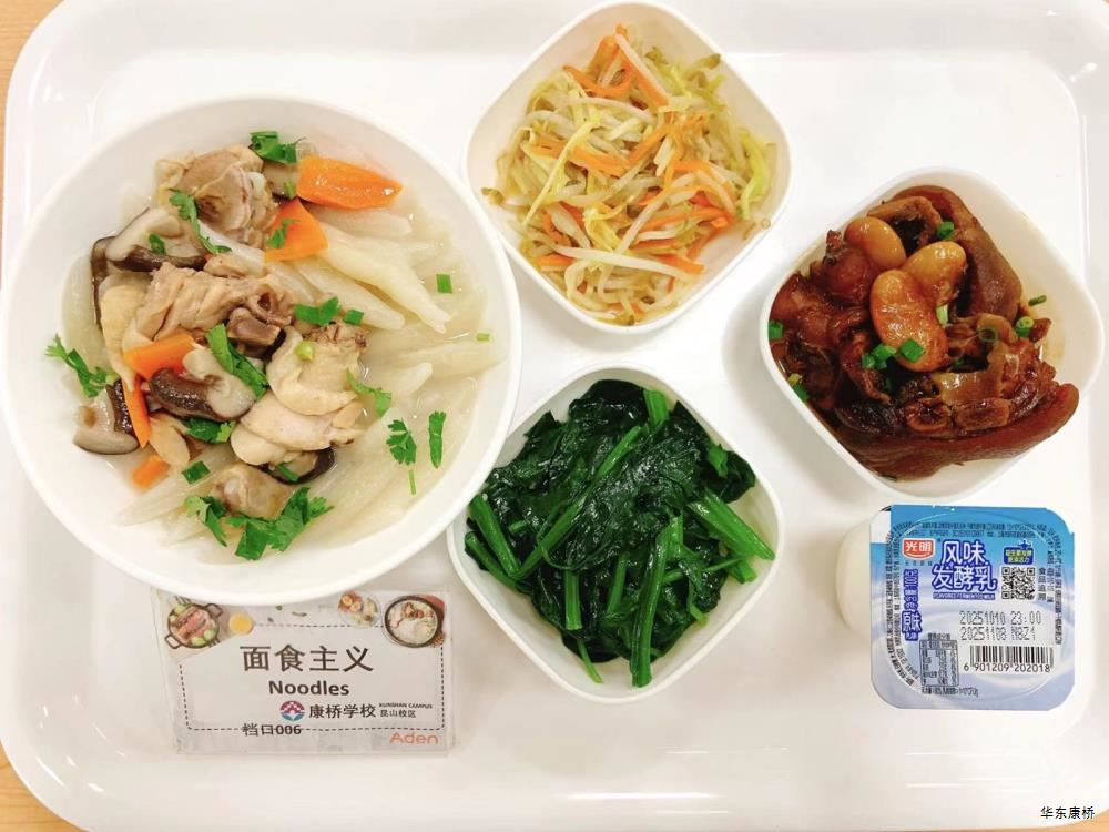 奥尔良烤鸡(不可添加) Orleans roasted chicken 夏威夷披萨(含菠萝) Hawaiian pizza with pineapple 香脆薯条 Crispy French fries 有机蔬菜 organic vegetables 水果或酸奶 Fruit or Yogurt 萝卜红烧羊腩(不可添加) Braised Lamb Shank with Radish 青椒香干肉丝 Green pepper flavored dried shredded meat 韭黄炒豆芽 Stir fried bean sprouts with chives 有机绿叶蔬菜 Organic Vegetables 米饭 Steamed Rice 水果或酸奶 Fruit or Yogurt 白芸豆红焖猪爪(不可添加) Braised Pork Claw with White Yundou 香菇炖鸡面疙瘩 Stewed Chicken Noodles with Mushroom 韭黄炒豆芽 Stir fried bean sprouts with chives 有机绿叶蔬菜 Organic Vegetables 水果或酸奶 Fruit or Yogurt -